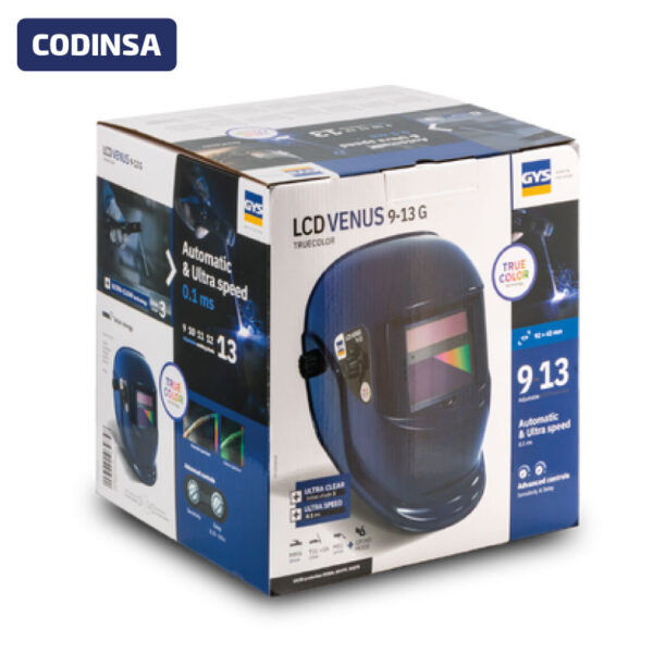 La Mascara de Soldar Fotosensible VENUS 3/9-13 G BLUE TRUE COLOR está diseñada para proteger el rostro y los ojos del soldador frente a la radiación ultravioleta, infrarroja y a las proyecciones de metal fundido durante los procesos de soldadura. Incorpora un filtro de oscurecimiento automático con tecnología True Color, que ofrece una visión más realista y nítida de los colores en la zona de trabajo, reduciendo la fatiga visual y mejorando la precisión.